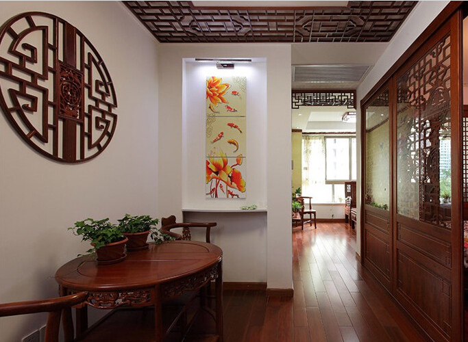中式風格家居是以宮廷建筑為代表的中國古典建筑的室內(nèi)裝飾設(shè)計藝術(shù)風格,氣勢恢弘、壯麗華貴、高空間、大進深、雕梁畫棟、金碧輝煌,造型講究對稱,色彩講究對比裝飾材料以木材為主,圖案多龍、鳳、龜、獅等,精雕細琢、瑰麗奇巧。