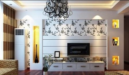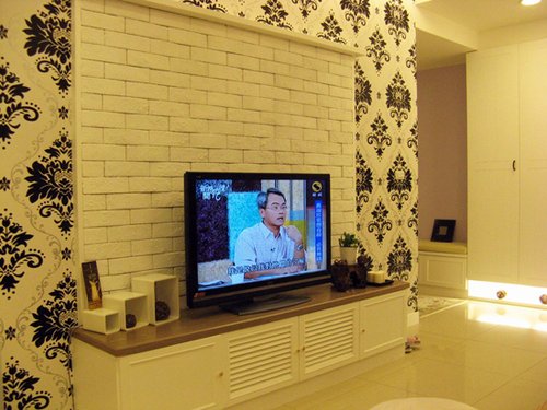 過去最常見的方法是電視墻與客廳的其他部位一樣,在電視旁邊配以一組矮柜,墻壁采用彩噴、墻紙、軒品無縫墻布等。彩噴多采用具有防潮、防霉、可洗、耐熱等效能的涂料,而市場上的墻紙、墻布有多種花紋、圖案,非常溫馨、溫暖。