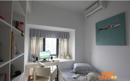 【次臥】書房和臥室兩用,絕不厚此薄彼,飄窗設(shè)計成書桌,即實用又節(jié)省了書桌的空間。