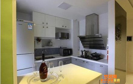【廚房】開放式設(shè)計讓空間看起來更開闊,吧臺作為隔斷,看起來自然美觀。(重慶裝飾公司還是建議經(jīng)常做飯的家庭安裝一扇推拉暗門,阻隔了油煙,裝飾效果也不差。)