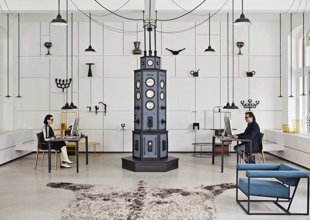 這所新的陳列空間位于其南部城市登博斯,在最近對(duì)外的采訪中,Doris也強(qiáng)說現(xiàn)在的室內(nèi)設(shè)計(jì)師們需要更多的才華——除了設(shè)計(jì)之外,需要具備商人的想法,想盡各種辦法吸引消費(fèi)者進(jìn)入店內(nèi),所以有了現(xiàn)在這種新展示方式,讓這間工作室看起來更像是間卡通化功能性兼具的科學(xué)電器的多寶閣,甚至以至于看起來像是一部蒸汽朋克的電影場(chǎng)景,設(shè)計(jì)師希望通過新的陳列方式削弱設(shè)計(jì)師顧客間的隔閡,讓走進(jìn)店面的人感受到職業(yè)化和非正式的,有工作也有自由輕松的玩樂的氣氛。