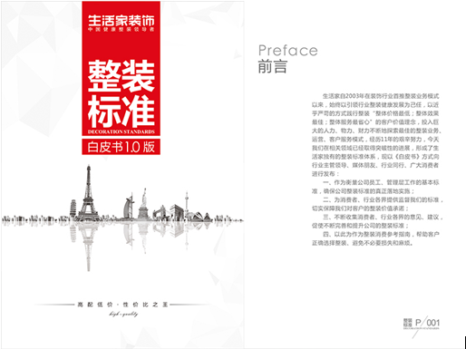 “從第一次提出整裝標(biāo)準(zhǔn)構(gòu)想時(shí),便受到了許多媒體朋友,以及中國(guó)裝飾協(xié)會(huì)、重慶裝飾協(xié)會(huì)的認(rèn)可和大力支持。在與中國(guó)裝飾協(xié)會(huì)、重慶裝飾協(xié)會(huì)的工作人員,各屆名流,各企業(yè)老總經(jīng)過了幾個(gè)月的討論征集、論證探討,從取證、論證、辯證到最后得出結(jié)論,并在充分吸取和整理生活家十多年的整裝經(jīng)驗(yàn)編撰成冊(cè)。” 重慶生活家裝飾總經(jīng)理翟燕表示,生活家裝飾作為首個(gè)發(fā)布自身標(biāo)準(zhǔn)的企業(yè),這些標(biāo)準(zhǔn)、條款將明確的告知客戶,讓大家知道什么樣的整裝才是好的整裝,真正的整裝,讓重慶消費(fèi)者真正能做到心中能夠有一桿秤,去判斷去篩選。