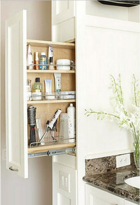 這種柜子最近在室內(nèi)設(shè)計中很流行,外觀整齊、美觀,但是里面卻暗藏玄機(jī),分層擺放上各種洗漱用品,輕輕拉開抽屜,就可以拿取,多簡單!