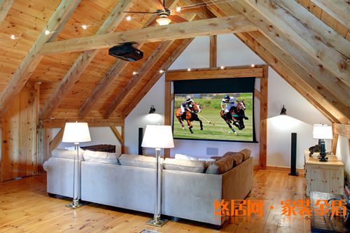 木質(zhì)吊頂也是閣樓裝修設(shè)計(jì)搭配的一個亮點(diǎn)。顯得清新自然,低矮的空間,作為音影區(qū),讓人放松,也很有安全感。
