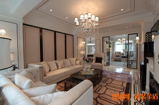 墻面整體都鋪上基層板材,外面貼上裝飾面板,整體效果雍容華貴,但會使房間顯得擁擠。還有一種雖是用密度板等板材整面鋪墻,但上面再刷上白色乳膠漆,從外表上看不出是用板材裝修的,它是利用密度板切割方便、邊緣整齊平直的特點,通過板材的拼接來做直線、坑槽等造型,這樣處理的墻面既平整、造型細(xì)致,又避免了大量使用板材而帶來的擁擠感。