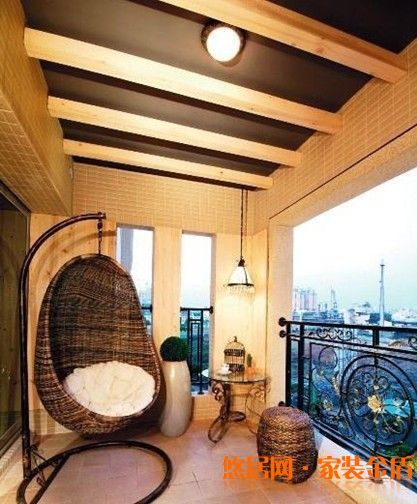 4、陽臺有很多種吊頂的方法。比如是做葡萄架吊頂、彩繪玻璃吊頂、裝飾假梁等等。如果家中的陽臺面積不大的時候,小編建議不做吊頂,免得使整個空間出現一種壓迫感。