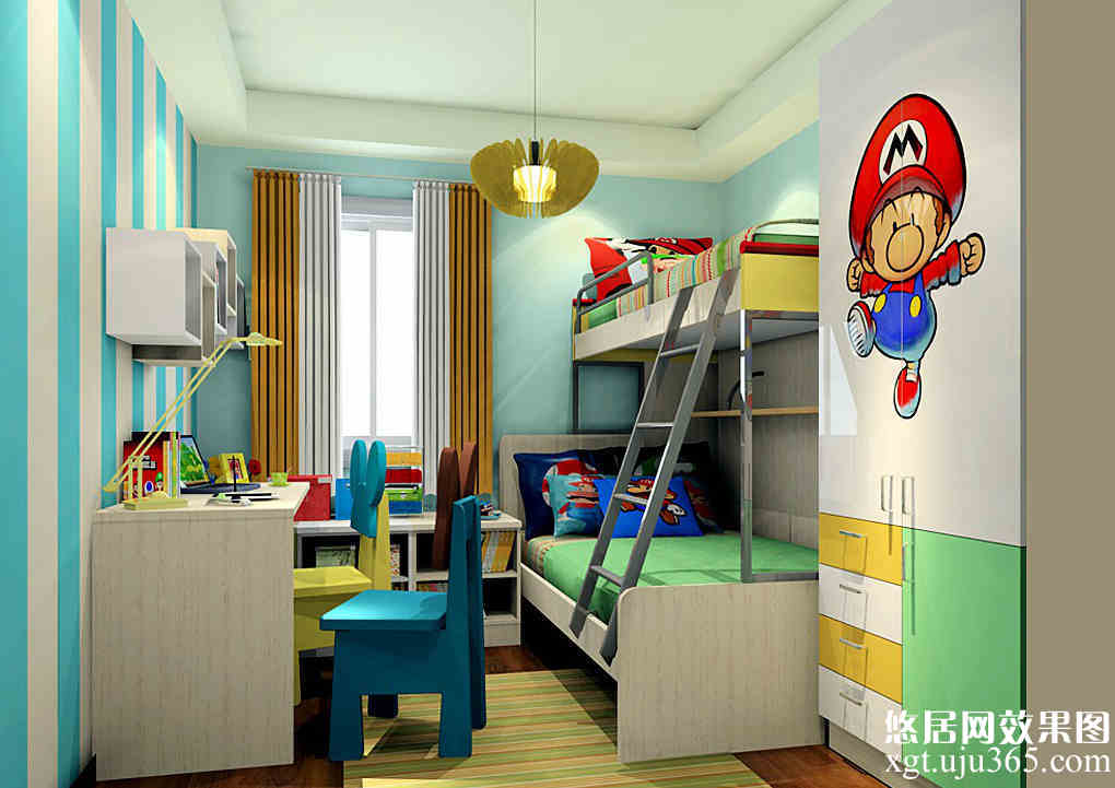 異域風(fēng)情展現(xiàn)在家居上會給人一種不同的感受,配上地中海本身具有的唯美和干凈,應(yīng)用在兒童房內(nèi)則會不由自主的生出一種看似簡單的色彩實(shí)則溫馨的環(huán)境,孩子需要這樣的溫馨的感覺,而地中海風(fēng)格兒童房設(shè)計實(shí)現(xiàn)了這一目標(biāo),為孩子打造了一個精彩的房間,讓孩子每天都生活在輕松的環(huán)境中。