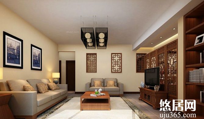 如果說(shuō)整個(gè)家居空間的裝修風(fēng)格是一種古典風(fēng),那么重慶裝飾網(wǎng)覺(jué)得可以設(shè)計(jì)一款較為古典背景墻來(lái)做客廳的隔斷,這種方式不僅能夠節(jié)省隔斷墻所需的材料費(fèi)用,而且與整個(gè)家居空間也更為協(xié)調(diào)。背景墻中間部分采用的透明玻璃設(shè)計(jì)也讓隔斷變得更加典雅。木質(zhì)的電視背景墻半框讓空間看起來(lái)更加古典。