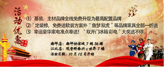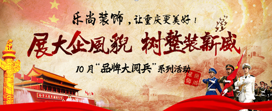 金秋十月秋風(fēng)送爽,值此佳節(jié)時(shí)分樂(lè)尚卻為廣大重慶裝修的業(yè)主送上“最激動(dòng)人心的裝修大禮”。樂(lè)尚裝飾自5月份在江北觀音橋成立最大整裝旗艦店以來(lái),獲得廣大業(yè)主的一致好評(píng)。不僅讓業(yè)主體驗(yàn)到絕無(wú)僅有的整裝服務(wù),更把實(shí)惠真正帶給咱們老百姓。如今十月份樂(lè)尚更舉辦盛大“品牌閱兵”活動(dòng)。萬(wàn)千業(yè)主共同見(jiàn)證,整裝大企再展雄風(fēng)。