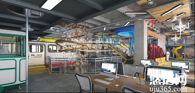 過江索道是重慶的旅游地標,纜車也成為這座城市的又一張“名片”,然而,隨著城市的發(fā)展,索道逐漸退出歷史舞臺,纜車也恐將廢棄,設(shè)計師打算回收幾個廢棄的纜車進行改造,使其在創(chuàng)意工場里變身纜車卡座,盡情體驗歷史滄桑。同時,在重慶上天入地穿梭在樓宇中間的軌道交通,在創(chuàng)意工場里輕軌車廂變成了連接一樓前后門的主通道。