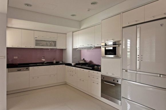 廚房想要營造大空間,應(yīng)該采用低對比度的色彩,太多熱烈的顏色會使得小空間有種燥熱氣氛,因此利用同一色系的相近色彩,可以感覺空間被放大;廚房里的餐具、飾品也要選擇與硬裝相同的色調(diào),既保持統(tǒng)一性,又增加空間層次感。