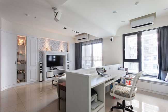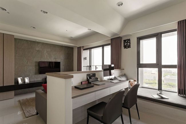 有些業(yè)主不喜歡封閉式書房的壓迫感,或家有孩童需要時(shí)時(shí)注意時(shí),半開放式書房就成為一項(xiàng)好選擇,透過玻璃隔間的處理,讓視覺穿透無覽,噪音也能有效隔絕,無形中更增進(jìn)家人間的互動(dòng)。而考量到玻璃隔間的形式,易讓使用者受外部影響而分心,設(shè)計(jì)師也建議,可搭配卷簾,針對(duì)不同的使用情況做彈性運(yùn)用。