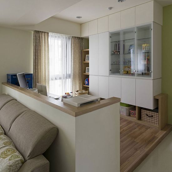 若家庭成員單純且不喜愛隔間造成的區(qū)塊感,設(shè)計(jì)師認(rèn)為,可以選擇以開放式手法規(guī)劃,透過半高墻或活動(dòng)柜作為機(jī)能界定,或借由不同的天花造型、地板的異材質(zhì)與架高手法,在不增加隔間前提下,成為空間的隱性劃分。