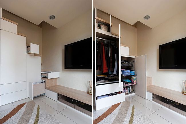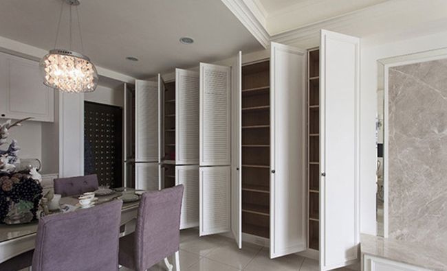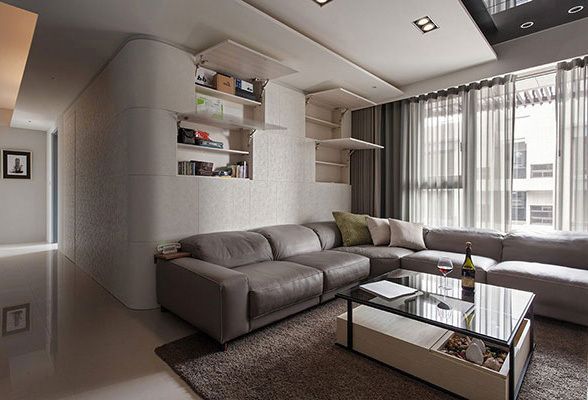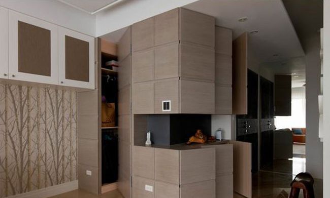 想擁有盡可能的的實用收納量,卻又不想要傳統(tǒng)笨重的柜子,設(shè)計師建議,可以利用繃布或異材質(zhì)來做柜子的表面,并且與兩側(cè)的色系相仿,不僅能巧妙地結(jié)合不突兀,整體也較有連續(xù)性,如此一來,就能創(chuàng)造柜體的隱藏效果,秘密擁有收納大空間!