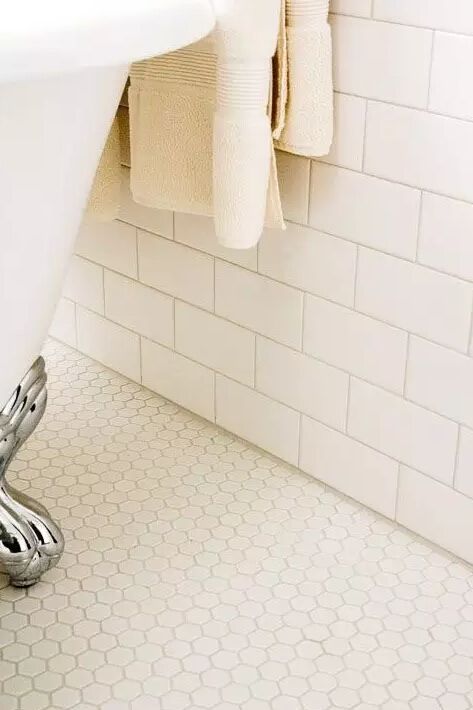 顏色淡雅的白底花紋磚,和白色方磚組合搭配,過渡銜接也很自然。