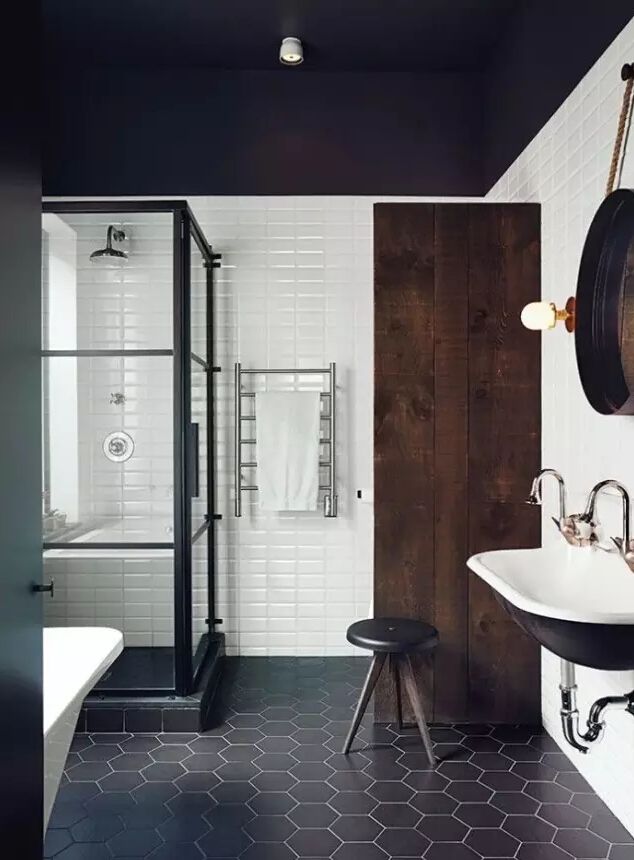 黑白衛(wèi)浴間比較常見的是將黑色用于地板或天花板。衛(wèi)浴間一般空間較小,墻面用純黑會(huì)比較壓抑。