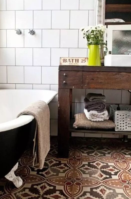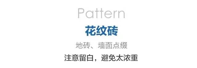 墻面用白磚、地板用花紋磚是比較保險(xiǎn)的組合,反過來在視覺上有頭重腳輕之感。