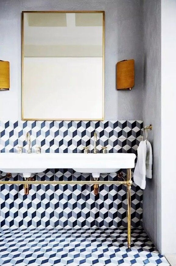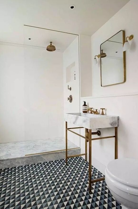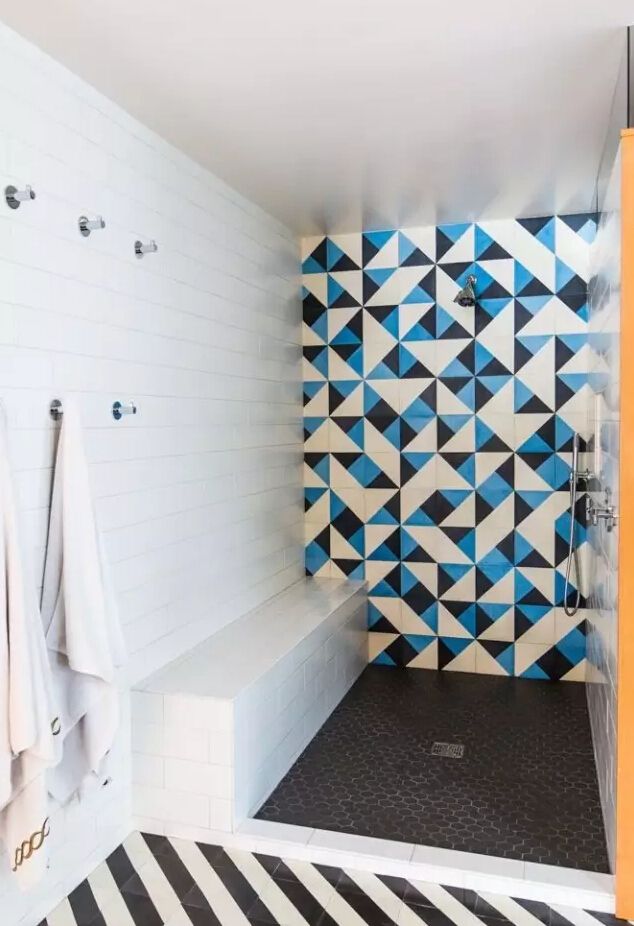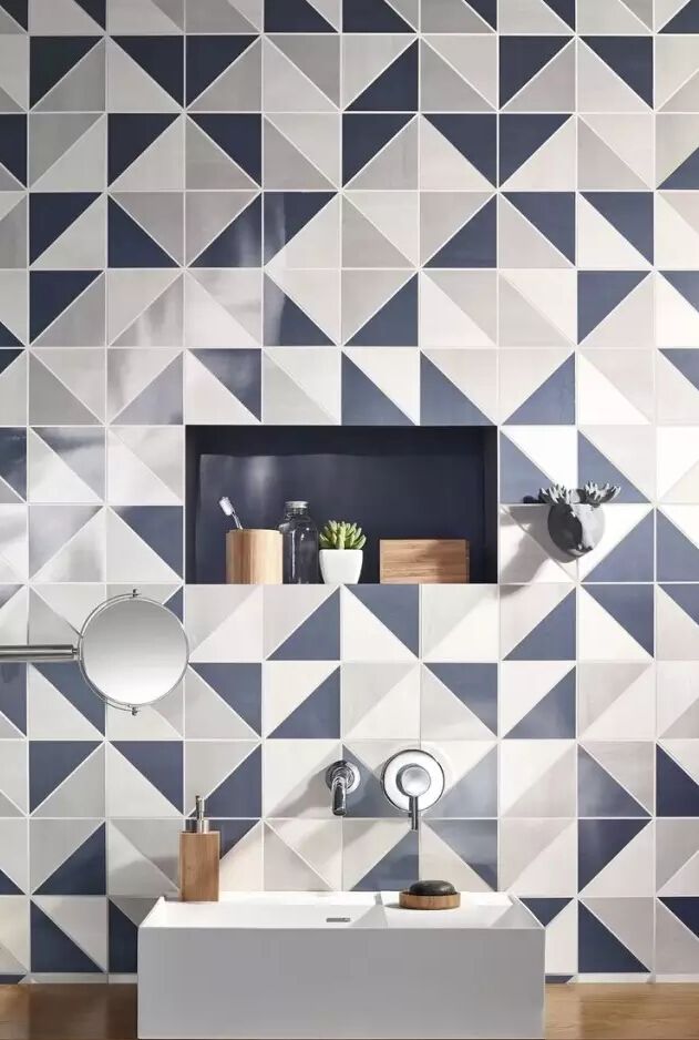 幾何紋瓷磚簡潔明快而富于設(shè)計(jì)感,也是衛(wèi)浴瓷磚常用的選項(xiàng)。