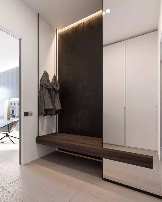 一般人們歸家的時(shí)候都是有些疲累的,所以過于繁美的玄關(guān)會(huì)加重人們的視覺疲勞,座椅一般玄關(guān)就做個(gè)收納柜,換鞋凳,裝一面穿衣鏡就好,既方便實(shí)用,又簡(jiǎn)潔大方!
