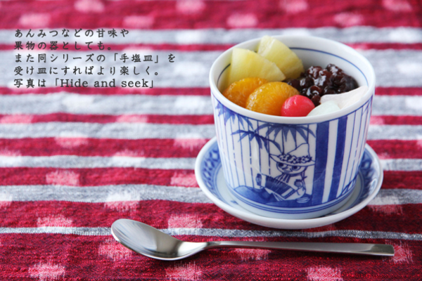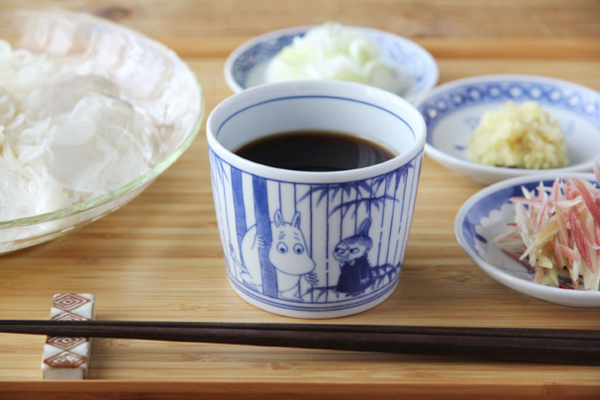 它叫MOOMIN×amabro蕎麥面碗,為什么叫這個名字?是因為它原本是吃冷蕎麥面時用來裝醬汁的小杯子,夾起蕎麥面,在醬汁里蘸一下吃?,F(xiàn)在的話,也可以用來裝沙拉、冰淇淋。