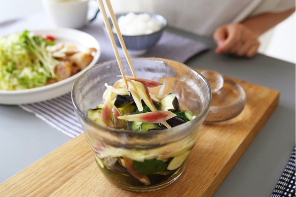 它叫KINTO淺漬缽(一夜?jié)n泡菜罐),是短時間腌菜的罐子。有個厚厚的玻璃蓋壓著,以防止漏氣。