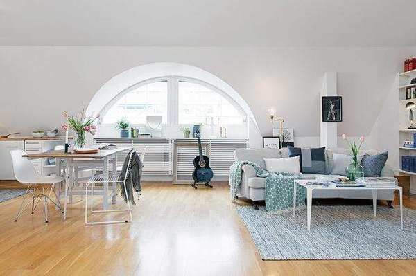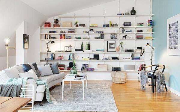 歐美電影里常常出現(xiàn)神秘又令人充滿好奇的閣樓場(chǎng)景,總是讓人想列入夢(mèng)想清單里,但受限于天花板向下傾斜不好規(guī)劃,往往也被拿來當(dāng)作儲(chǔ)藏室來使用。這間公寓,不但沒有被傾斜的天花板困擾,更因?yàn)殚w樓的先天優(yōu)勢(shì)采光良好。開放式的空間,讓屋內(nèi)不擁擠,空氣流通更順暢,陽光更充足。而書架直接用層板沒有邊框的設(shè)計(jì),也解決了傾斜天花板,不好擺放家具的問題,不但很有風(fēng)格,能收納的空間也是一流。如此清爽的小閣樓,你也想要住嗎?