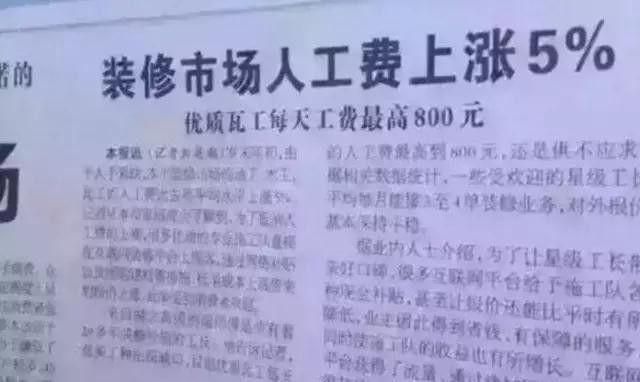 1:裝修人工費上漲:根據(jù)家裝市場行情,每年年尾到年頭,泥工、瓦工、木工、油漆工等裝修工人的人工費都有不同程度的上漲。