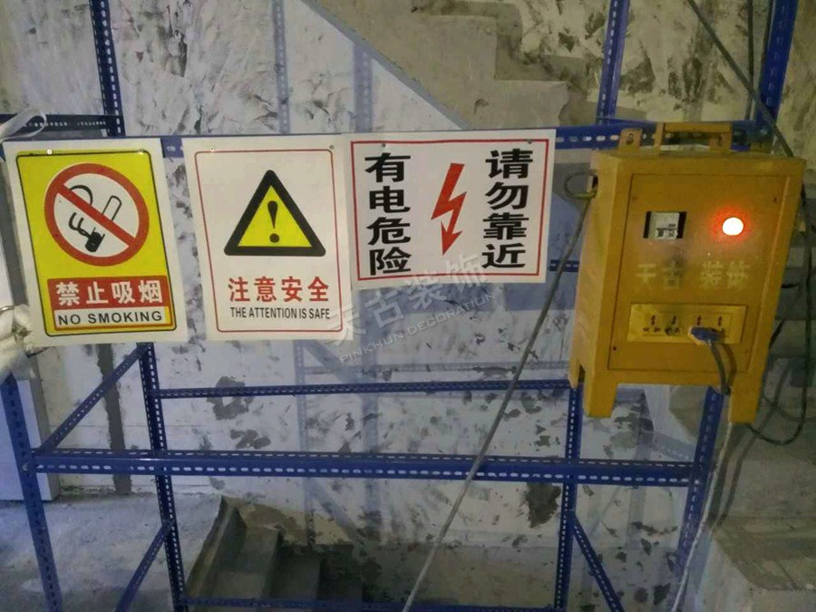 設有臨時取水位和臨時衛(wèi)生間;安全警示標志非常完善,以保證施工安全;質檢工具齊全,驗收工序完整齊全;衛(wèi)生間、廚房等門檻做了特殊防水處理;臨時衛(wèi)生間坐便器做了特殊處理;