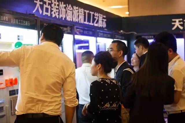 天古裝飾工作人員向消費(fèi)者介紹渝派精工工藝