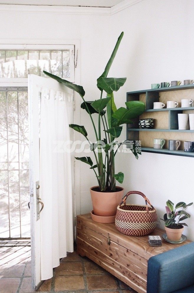 如今大多數(shù)人都住在高層小區(qū)住宅樓里,不似從前擁有自己的院子。那么門內(nèi)的世界總可以自己支配吧,進(jìn)門處,實(shí)木的鞋柜和純白墻壁,都為綠植做好了準(zhǔn)備。高大的芭蕉葉盆栽擺放在這里,顯得恰到好處。