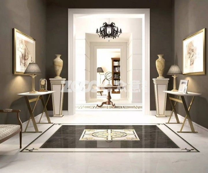 對于重度懶癌患者,可以選擇擁有不同尺寸及花紋的套裝式瓷磚,利用波打線和花磚輕松打造貴氣的地毯式造型。
