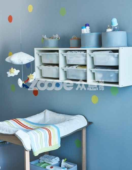 有了儲物件,在深夜為孩子換尿布時(shí),不僅省去了到處翻找的麻煩,還能節(jié)省時(shí)間。垃圾桶和籃子掛在嬰兒換衣桌上方的墻壁上,孩子無法夠到,但你卻觸手可及。之后,你就可以將儲物件調(diào)節(jié)到地板高度,方便孩子取拿他們的玩具!