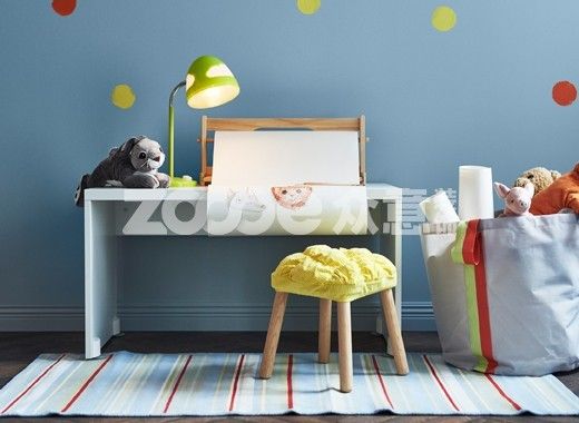 扶手椅區(qū)域用作喂奶和唱搖籃曲的地方,這樣你就能輕松把孩子放回床上了。你用的邊桌以后可以用作兒童凳——套上彩色的凳套,讓它更柔軟。一開始,這款獨(dú)立式的儲物袋可用來擺放舒適的毯子。孩子長大后,可用來擺放他們的東西。