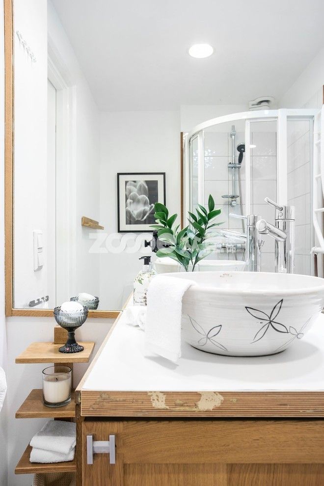 這點(diǎn),絕對(duì)是沒(méi)有對(duì)外窗的衛(wèi)生間,一定要做到的事!想想,沒(méi)有對(duì)外窗,濕氣已經(jīng)夠重了,還把水氣濕氣搞得整間都是,根本就干不了阿!如果一開(kāi)始就沒(méi)有規(guī)劃干濕分離了,浴簾也是個(gè)補(bǔ)救的好方法,起碼還是可以擋掉一些四濺的水花。