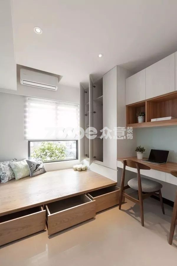 你家的床底都放了什么?因為容易落灰,恐怕大家的床下面只放了各種紙盒和行李箱。把床設計成地臺床就不用擔心落灰啦,這樣孩子的玩具、衣服等也有了放的地方。