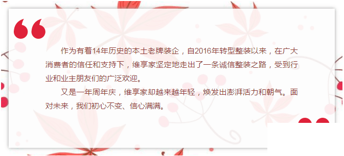 12月10日,維享家裝飾迎來14周年慶的第一波活動落地,維享家具有超高性價比的透明整裝服務,和誠意滿滿的周年慶活動特惠,吸引了眾多消費者來到現(xiàn)場,熱情的掌聲和歡呼聲將現(xiàn)場喜慶氣氛推向一個又一個高潮。