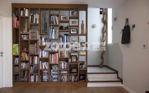 利用書架做隔斷,不僅避免了因隔斷的存在而浪費額外的空間,反而方便了一些書蟲的需要。書架兩側(cè)也都可以放滿書。