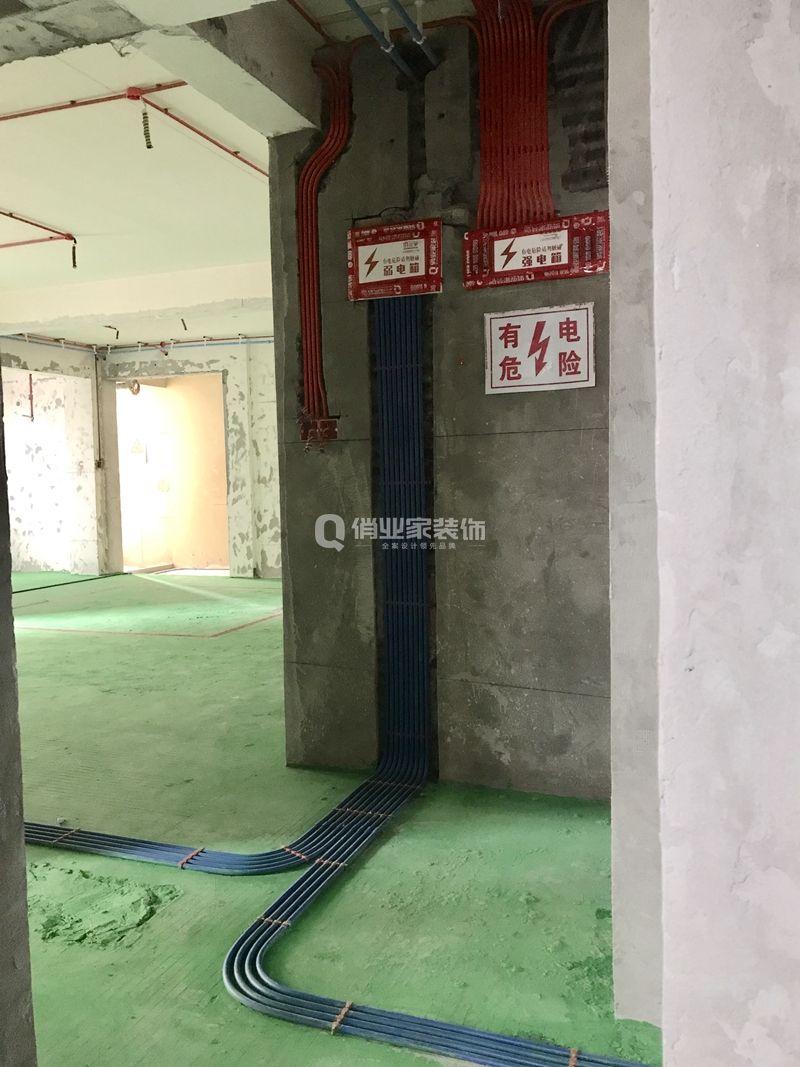 俏業(yè)家在施工中,采用了強(qiáng)電走天,弱電走地,避免強(qiáng)電影響弱電信號(hào)的穩(wěn)定性。同時(shí),水管走天,方便后期維修。