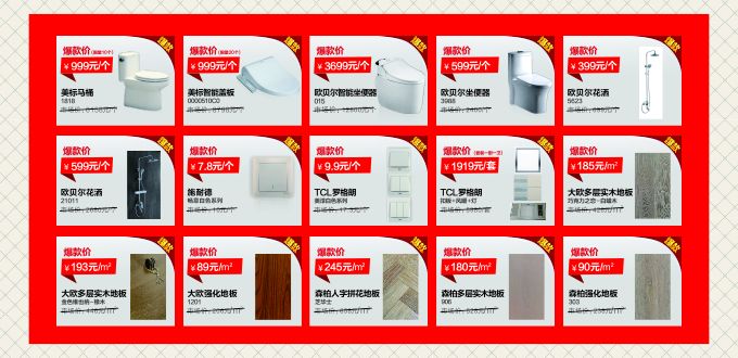 超值主材全場通選,進(jìn)口家電滿額就送。對開門冰箱、液晶電視、豪華洗衣機(jī)、品牌微波爐。為你省到家!更有特價爆款限時搶購!就等你來!
