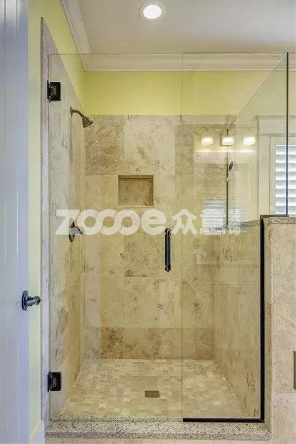 這樣的做法在安裝的時(shí)候需要配合五金件才能固定到墻上,裝上后玻璃與墻面之間會(huì)有一定的間距,會(huì)讓淋浴房的封閉性不好,如果追求淋浴房的封閉性的話,就還是看第①或③種方案吧。