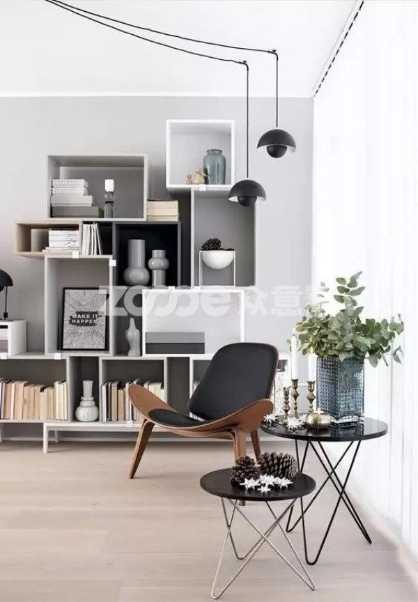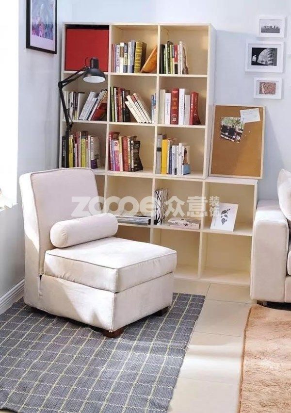閱讀區(qū)的布置少不了書的擺放,一個(gè)簡(jiǎn)易的書柜或者置物柜,放置??吹臅确奖闳》?,還能營造“小型圖書館”氛圍,更有利于閱讀。