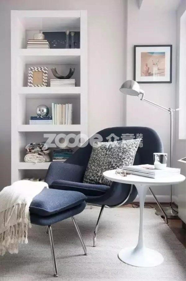 一杯水、眼鏡、小零食、筆記本等小物件,也需要簡(jiǎn)易像小圓桌這類的置物架擺放。簡(jiǎn)易的置物架可以讓閱讀角整潔,更有氛圍。