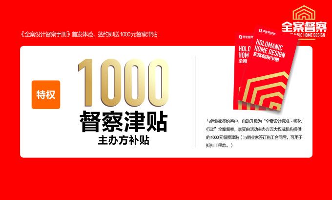 凡與俏業(yè)家簽約的客戶,自動升級為“全案設(shè)計(jì)標(biāo)準(zhǔn)·孵化行動”全案督察,享受由活動主辦方五大權(quán)威機(jī)構(gòu)提供的1000元督察津貼(可用于抵扣工程款)。