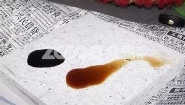 好的石英石密度非常高,把帶色的液體倒上去5分鐘后擦去,不會留有痕跡。劣質的石英石密度低,液體倒上去后會滲透到表面小孔里,有顏色留下。