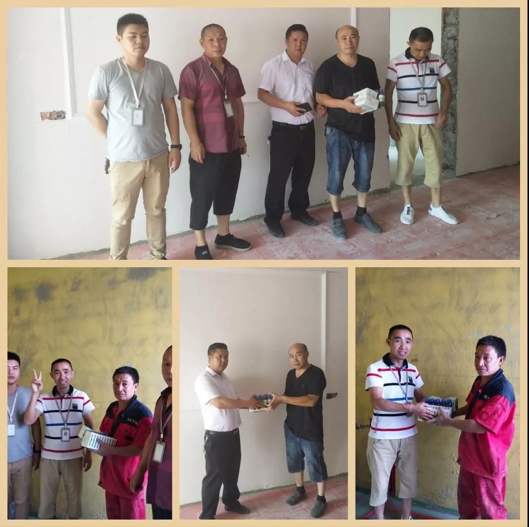 7月13日,是重慶楊家坪店每周的工巡查日,這天,工程部譚總攜工程部管理者去到各個工地上為我們現(xiàn)場的施工工人們貼心的送去解暑藥,以表慰問。