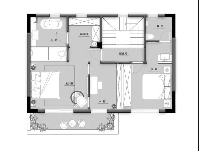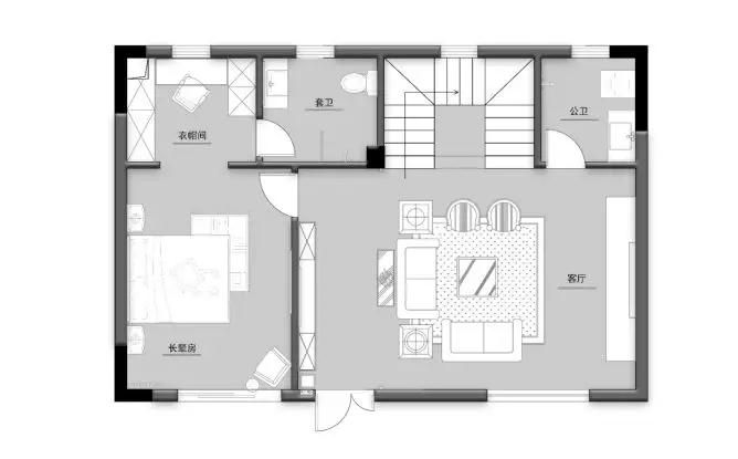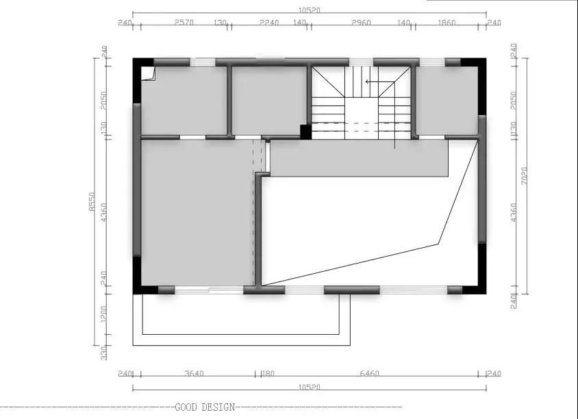 戶型缺點(diǎn):側(cè)面承重梁阻擋樓梯;縱梁重且低;無(wú)通風(fēng)采光。