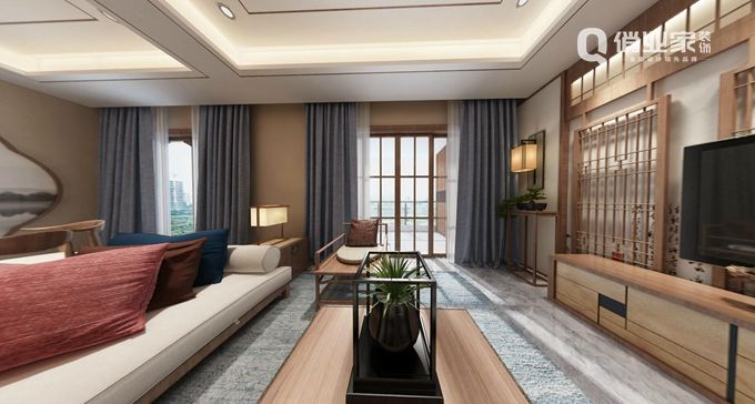 2、新中式風(fēng)格:新中式風(fēng)格的家裝則會運(yùn)用壁紙、?;u等材質(zhì)做墻面和地面的處理,而在裝飾方面則是搭配飽和度略高的紅、黃、藍(lán)、綠等色作為局部色彩。