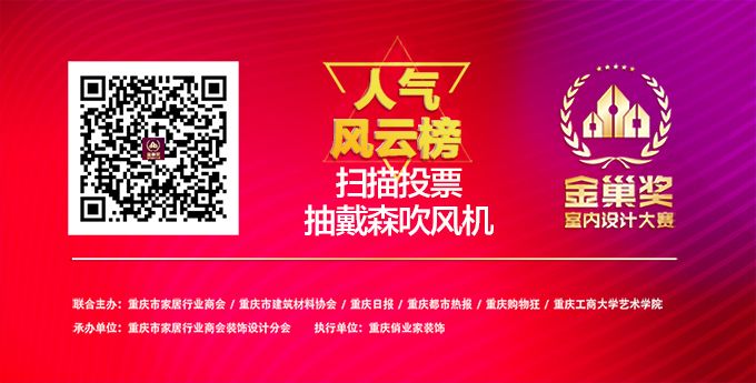 大賽投票時間為11月15日到11月21日,得票最高的第一名“網(wǎng)紅”設(shè)計大師將獲得第三屆“金巢獎”室內(nèi)設(shè)計大賽組委會頒發(fā)的【超級人氣獎】。