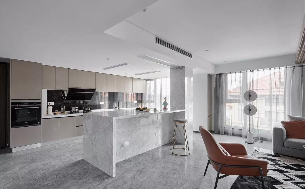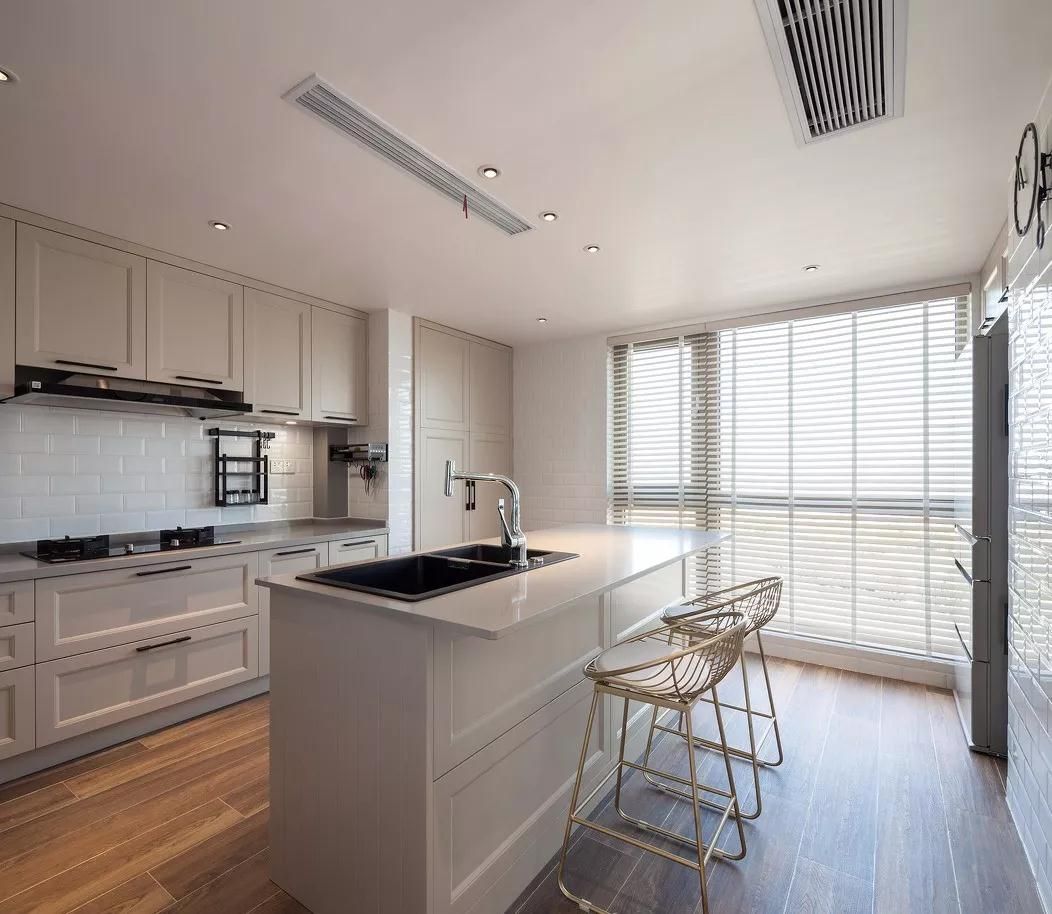 廚房吊頂不宜過(guò)低,顏色不能太深。吊頂過(guò)低會(huì)導(dǎo)致廚房?jī)?nèi)空氣不流暢;顏色太深則會(huì)導(dǎo)致廚房空間過(guò)于壓抑。