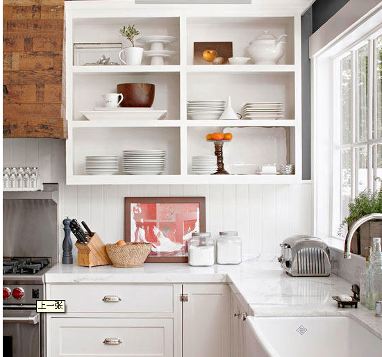 有時裝修是一樣減法,在廚房的上柜,摒棄了櫥柜門轉而選擇了開敞的設計模式,里面擺上在自己喜歡的餐具或食材,是具有煙火氣息的裝飾法。